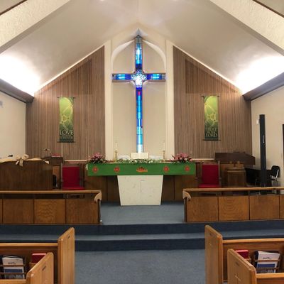 April 17th, 1950 the corner stone was laid and the rebuilding was started on the present building. The first services in the New Methodist Church were held December 31st, 1950. The formal dedication of the new church was held February 11th, 1951. A new brick parsonage was built and consecrated December 11th, 1956.